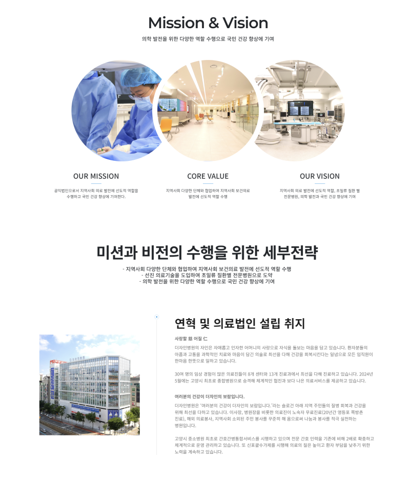 핵심가치: 환자 중심, 전문성, 혁신, 협력