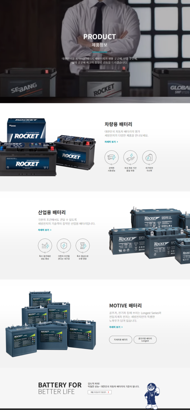 • ✔ 주요 사업: 자동차용 배터리 (로케트 배터리), 산업용 배터리 (UPS, ESS, 전기차, 모바일 등), 친환경 에너지 솔루션 개발