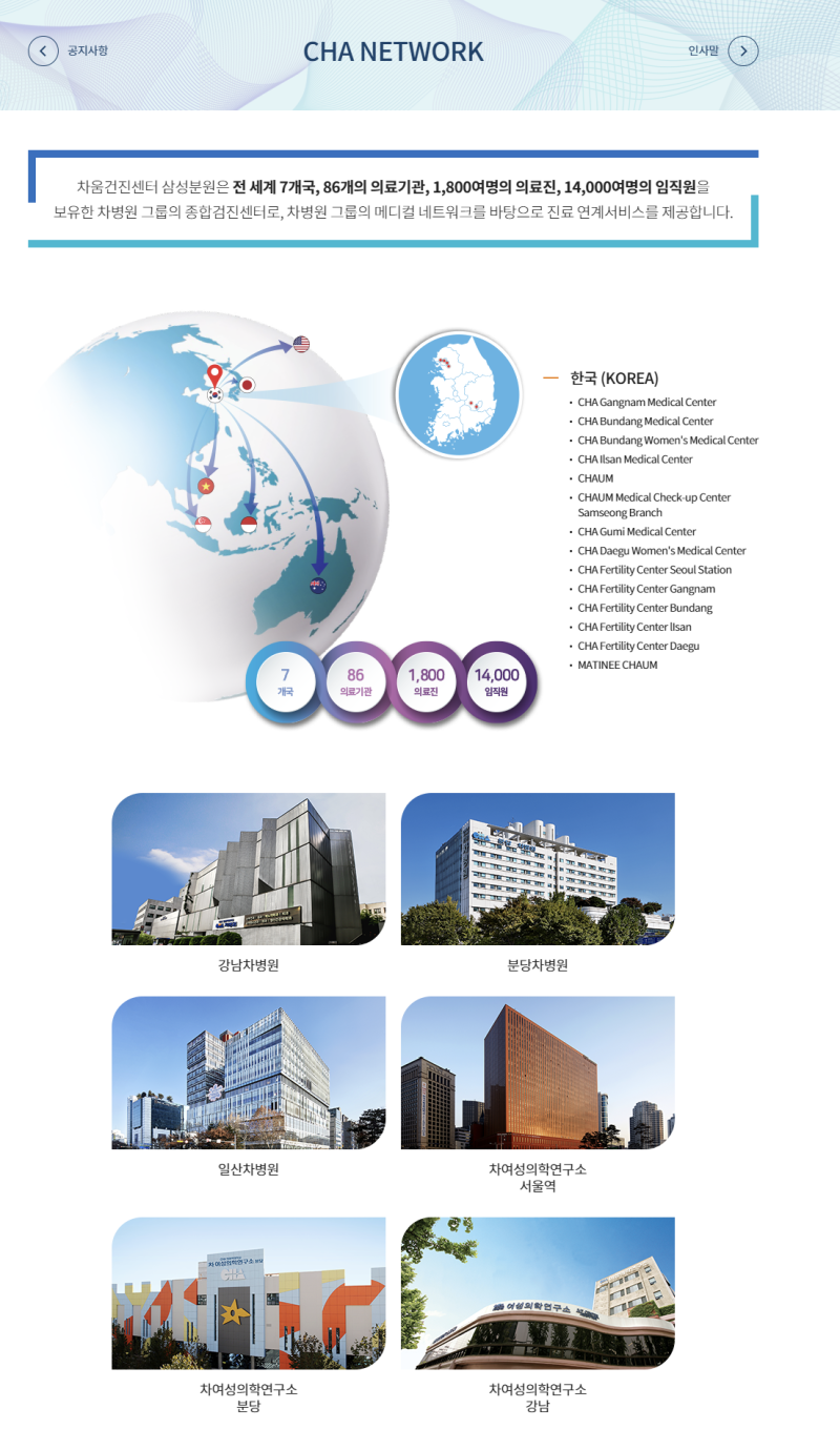 - 🔬 주요 사업: 프리미엄 종합 검진, 안티에이징 클리닉, 면역 증강 클리닉, 디톡스 클리닉, 비만/대사증후군 관리, 세포 치료 등 토탈 웰니스 서비스