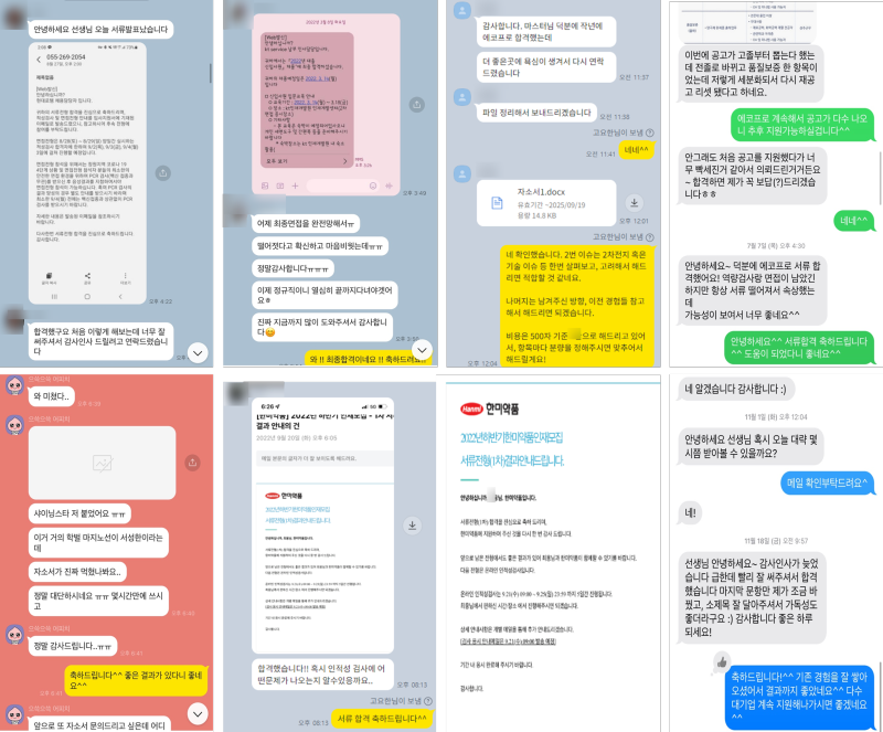 수백명 이상 합격 사레 보유 – 대기업/공기업/공무원 및 병의원 / 자소서, 경력기술서, 직무수행계획서 첨삭대필 작업드리고 있습니다.  (현대자동차, 기아자동차, 삼성전자, SK하이닉스, 포스코, 현대로템, 중공업, 건강보험공단, 한국전력, 한국도로공사, 각종 병원, 공무원 등 매년 합격 보유)