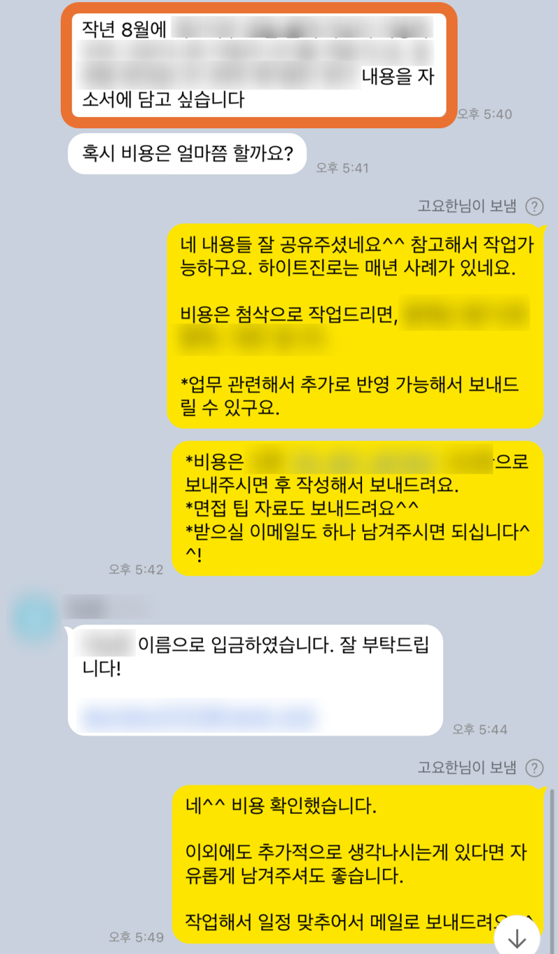 자소서 첨삭 및 컨설팅은 다음과 같은 과정으로 진행됩니다.
