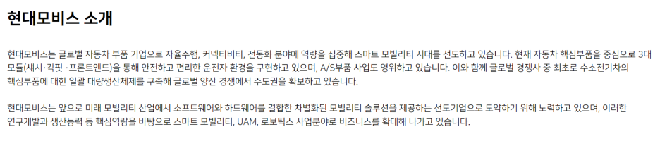 – 현대모비스의 핵심 기술 및 사업 분야에 대한 이해를 바탕으로, 자신의 역량이 기여할 수 있는 부분을 구체적으로 제시합니다.