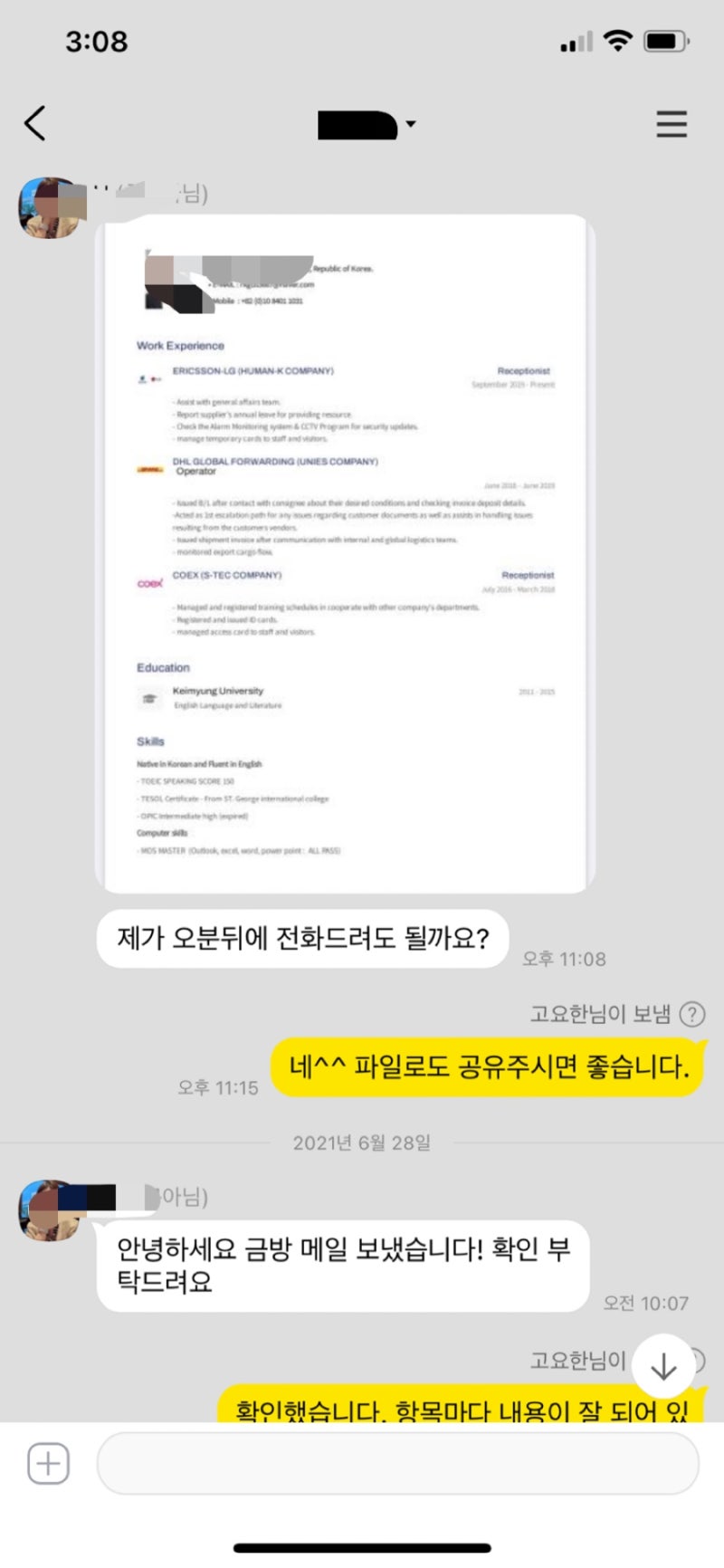 - >> 문의 및 상담: 카톡/문자/전화 등으로 편하게 연락 주세요! 지원 직무와 기업, 마감 기한 등을 알려주시면 됩니다.