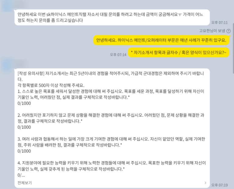 SK하이닉스 자소서 합격 전략! 첨삭 후기