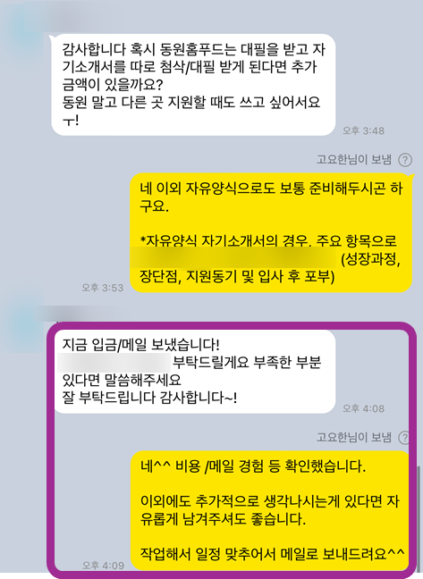 동원홈푸드 자소서 작성법 자기소개서 문항 첨삭 대필 합격