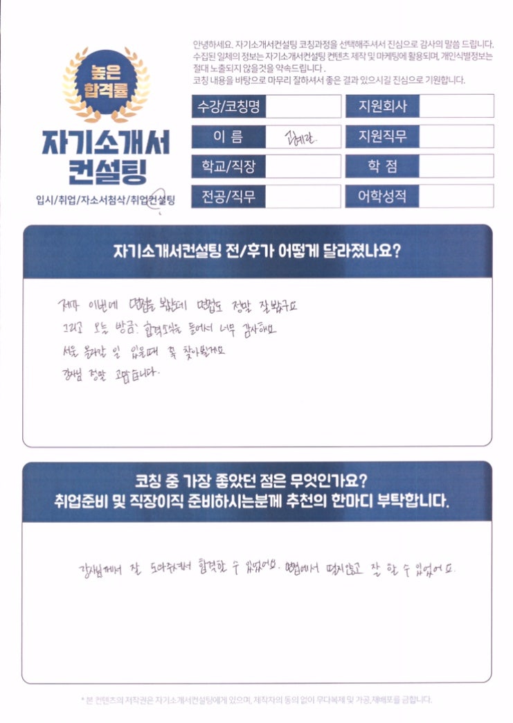 삼성전자 면접컨설팅 후기, 합격 자소서 작성법과 항목 분석까지!