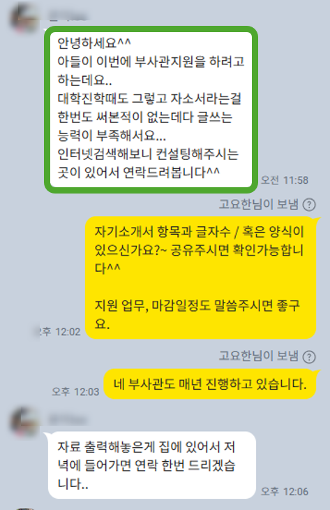 부사관 채용, 합격 자기소개서 문항 분석 및 실전 자소서 작성법 컨설팅 사례