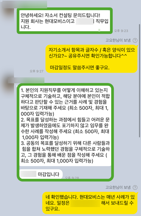 [현대모비스] 품질관리 직무 자소서 첨삭 대필 합격 후기! (자기소개서 작성법 포함)
