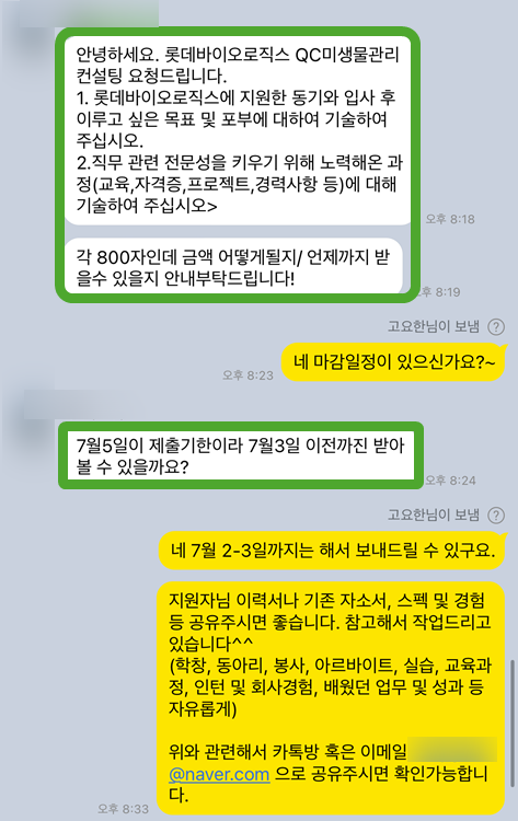 롯데바이오로직스 자소서 작성법 자기소개서 문항 첨삭 대필 합격
