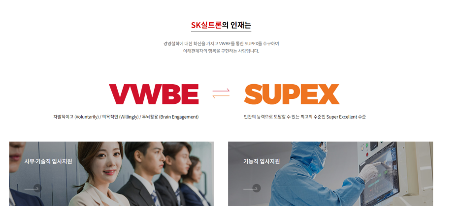 - 핵심가치: 상생, 도전, 열정, 혁신 (SK그룹의 SUPEX 추구 정신과 일맥상통하며, 끊임없는 개선과 발전을 지향해요.)